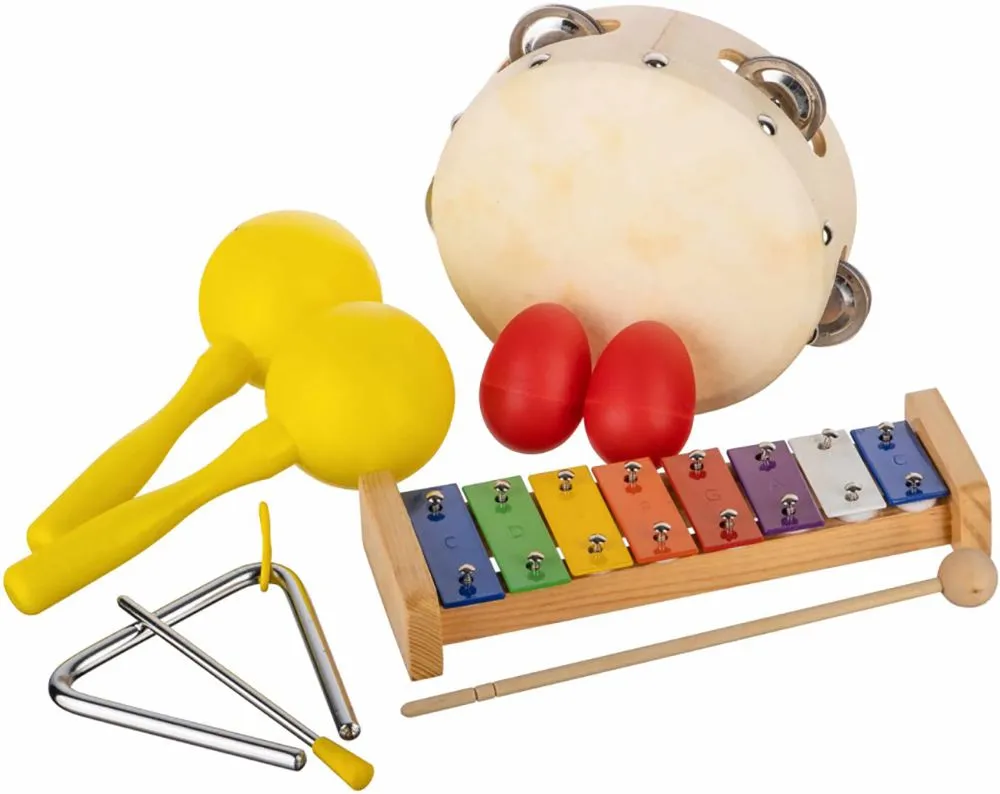 5 предметов в чехле (тамбурин, маракасы деревянные на ручке, треугольник, ксилофон, маракасы-яйцо).