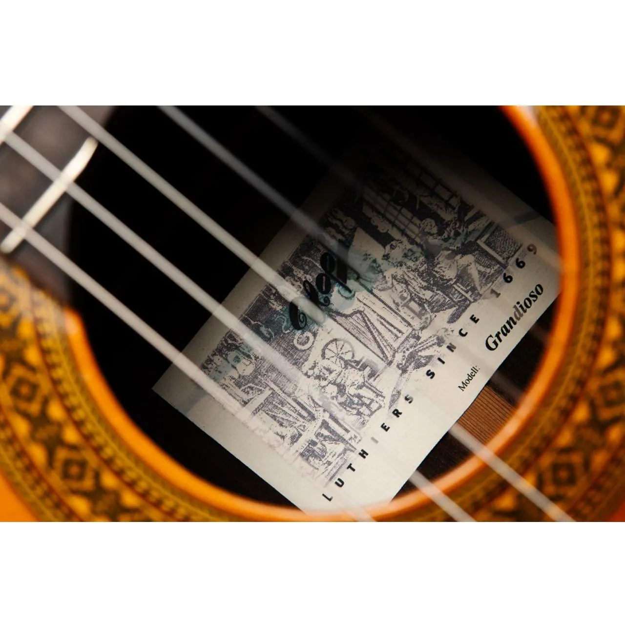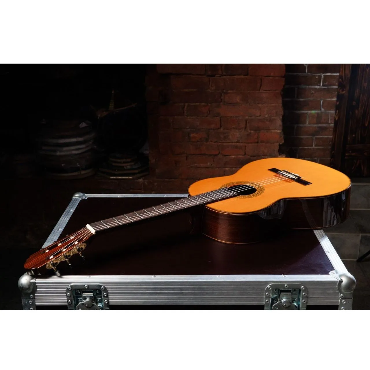 Верхняя дека - кедр. Обечайка и задняя деки - палисандр. Гриф - красно дерево. Мензура 650мм. Ширина порожка 52мм.