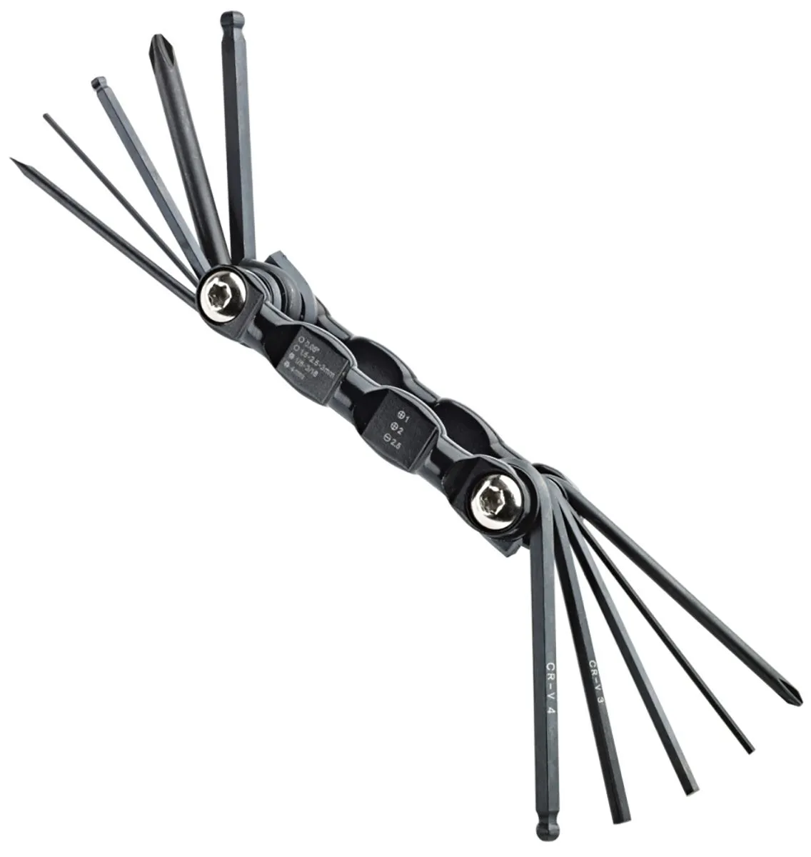 Универсальный гитарный инструмент, состоящий из шестигранных ключей в дюймах (0,05"), со сферической головкой (1/8" и 3/16"), метрических (1,5–2,5 и 3 мм) и метрических со сферической головкой (4 мм). В комплект также входят две крестовые отвертки (Philips 1 и 2) и шлицевая отвертка 2,5 мм.